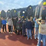 Neujahrsfeier- Bei Minustemperaturen besammelten sich alle Klassen rund um das Feuer und der Schulleiter wünschte allen Kindern und Lehrpersonen einen guten Start ins neue Jahr. Freude, Zufriedenheit, Glück, Erfolg aber auch in schwierigen Situationen einen guten Weg bei Problemen zu finden sei wichtig, wie es auch in Märchen immer wieder deutlich vor Augen geführt wird. Auf einem Märchenstuhl erzählte der Schulleiter ein Märchen und danach warfen alle ihre Wünsche bei Musik ins Feuer. Jede Klasse hatte zudem ein Plakat mit einem Märchen gestaltet und diese Kunstwerke wurden den anderen Kindern vorgestellt. Zum Abschluss sang die ganze Schulgemeinschaft das «Uedliger-Lied» und freuten sich auf die warmen Schulzimmer. Der märchenhafte Start bleibt bestimmt allen noch lange in guter Erinnerung.