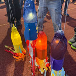 Sporttag- Bei herrlichem Wetter (wer hätte das gedacht), fand unser Sporttag den ganzen Morgen in gemischten Gruppen statt. Unter den Kindern herrschte eine gute und fröhliche Stimmung. Sie mussten Smarties und Wasser transportieren, mit Bällen zielen, eine Stafette absolvieren, Bobycar-Rennen fahren oder auch Kappla-Türme bauen. Am Ende des Morgens standen die Siegergruppen fest. Es gewann die Gruppe „Zwerge“ vor den Gruppen „Aschenputtel“ und „Froschkönig“.