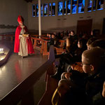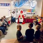 Vorweihnachtszeit- An der ersten von drei Lichtfeiern erzählte Petra Scherer eine Geschichte vom Sternenstaub und zeigte dazu Bilder. Überraschender Besuch dann am 6. Dezember bei unseren jüngeren Kindern. Der Samichlaus mit seinem Diener kam in den unteren Klassen vorbei und brachte Nüsse und Leckereien mit. Während der Adventszeit wird es auch im Schulhaus weihnachtlicher. Es werden Weihnachtsdekorationen gebastelt und die drei Weihnachtsbäume in den Schulhäusern werden von Tag zu Tag mehr geschmückt.