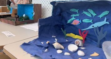Zu verschiedenen Tieren gestalteten die Kinder im fächerübergreifenden Unterricht kunstvolle Schuhschachteln, welche sie feierlich an einer Ausstellung den Eltern präsentieren durften. In Podcasts, welche man mit einem QR-Code öffnen konnte, erzählten die Schülerinnen und Schüler ihre Überlegungen und Ideen zur Gestaltung der Schachtel.
