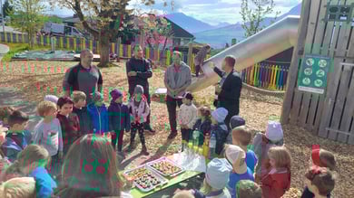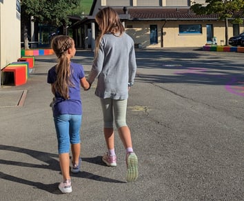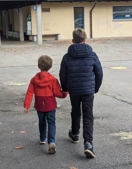 Die Kindergartenkinder durften auf dem Pausenplatz ihr Gotti/Götti-Kind der 3./4. Klasse per Los ziehen. Gemeinsam lernten sich die beiden Kinder bei einem Spaziergang kennen. Weitere spontane Treffen, sowie auch ein abgemachtes Pausentreffen sollen die Bekanntschaft vertiefen.