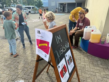 Pause mit OK-JAA- In der Pause kamen die Jugendarbeiter der offenen Kinder- und Jugendanimation Adligenswil, um in der Pause die Kinder mit einem Getränk auf ihr Angebot aufmerksam zu machen. Jeden Freitag Nachmittag/Abend ist «Kids-Treff» für alle von der 5. und 6. Klasse im Jugisorium. Billardspielen, Pingpong oder Tischfussball? Chillen, Freunde treffen und Quatschen, oder etwas unternehmen? Das Jugisorium bietet viele Möglichkeiten. Für die Verpflegung steht ein Kiosk mit günstigen Getränken und Snacks zur Verfügung. Martin Tiziani, Co-Schulleiter