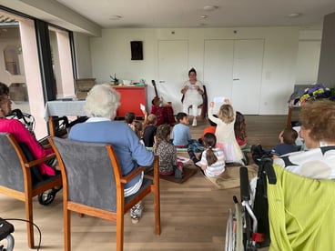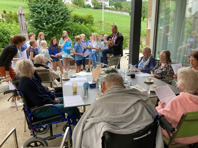 Für die Kindergartenkinder und die Bewohnerinnen und Bewohner im Altersheim wurden Märchen erzählt. Wir danken der Märchenerzählerin und den Mitarbeitenden des Bächlis für diesen schönen Anlass. Am Freitagnachmittag sangen die 5./6. Klassen für die ältere Generation viele Lieder, welche die Kinder während dem Schuljahr gelernt hatten. Es herrschte gute Stimmung und erfreute Jung und Alt.
